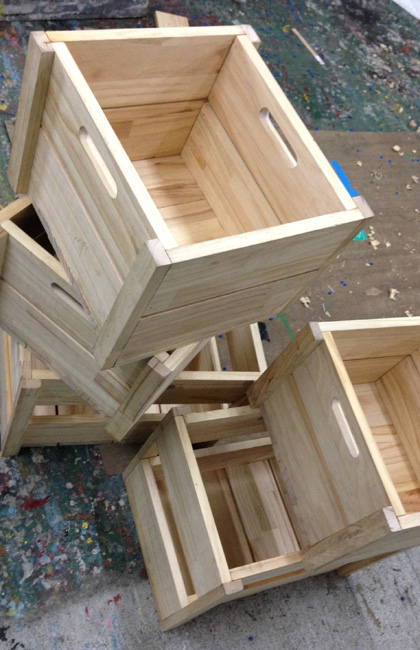 棚に合わせたウッドボックスを何個か作りました。